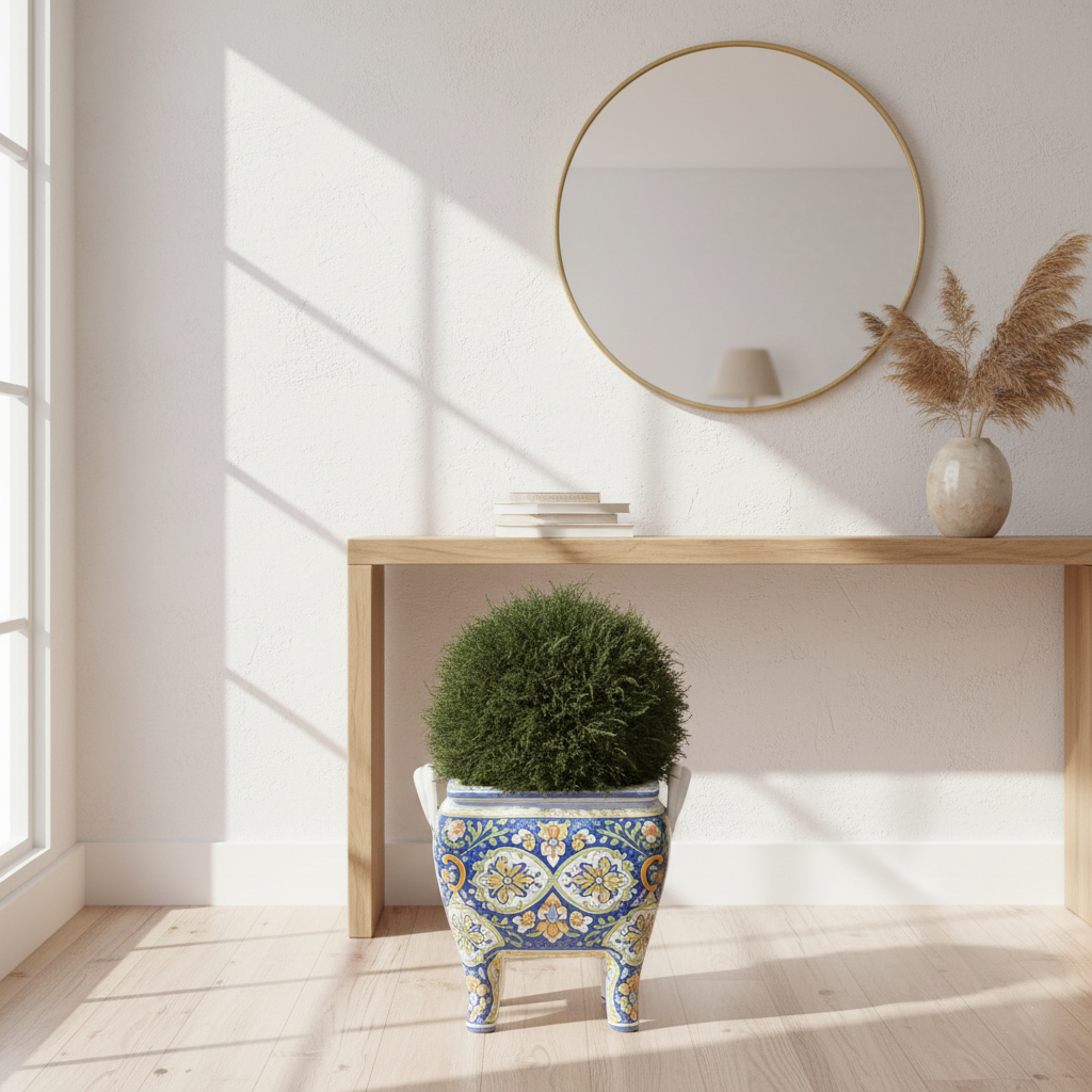 En Floristería Ivars, elevamos el concepto de plantas artificiales de alta gama. Nuestra media bola (formato 3/4 de esfera) de 50 cm no es solo un elemento decorativo; es una pieza de ingeniería ornamental diseñada para quienes buscan la perfección estética sin las complicaciones del mantenimiento natural.