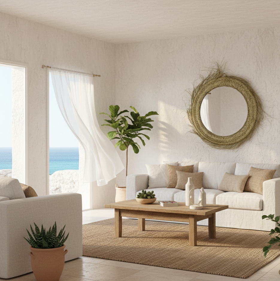 Espejo de esparto apra decorar ambientes naturales o mediterráneos