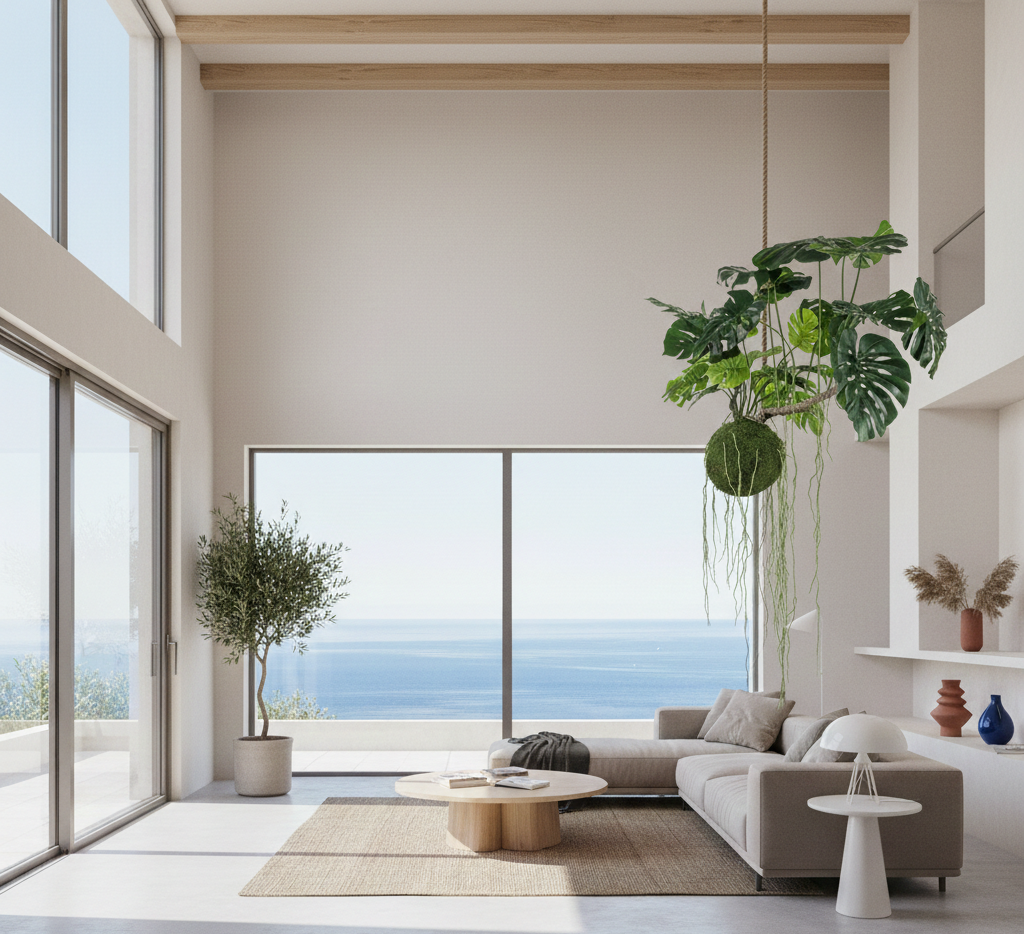 Una kokedama colgante diseñada para ser protagonista, aportar elegancia y transmitir la sensación de naturaleza viva, sin complicaciones. Ideal para proyectos decorativos que requieren piezas extraordinarias.