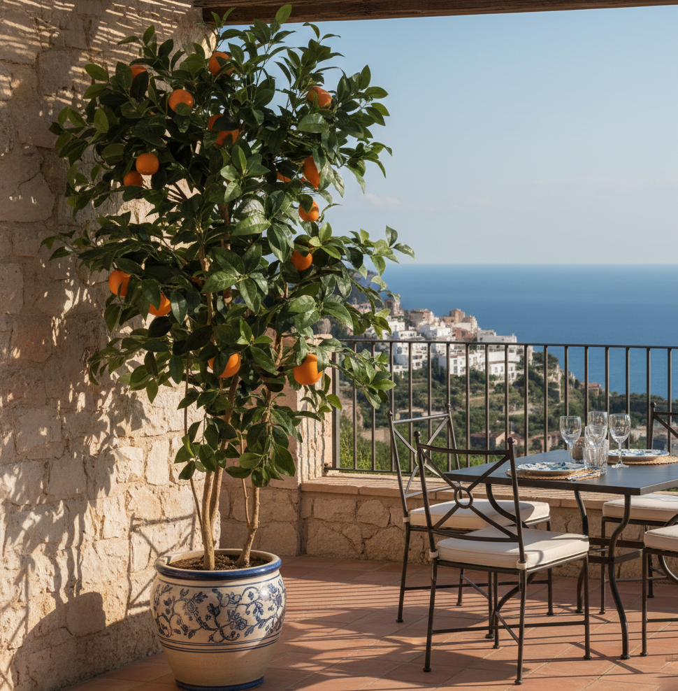 Este naranjo es el complemento ideal para ambientes rústicos, campestres o de estilo mediterráneo. Su porte elegante permite decorar desde amplios salones y recibidores hasta oficinas que necesiten un toque de frescura y calidez.