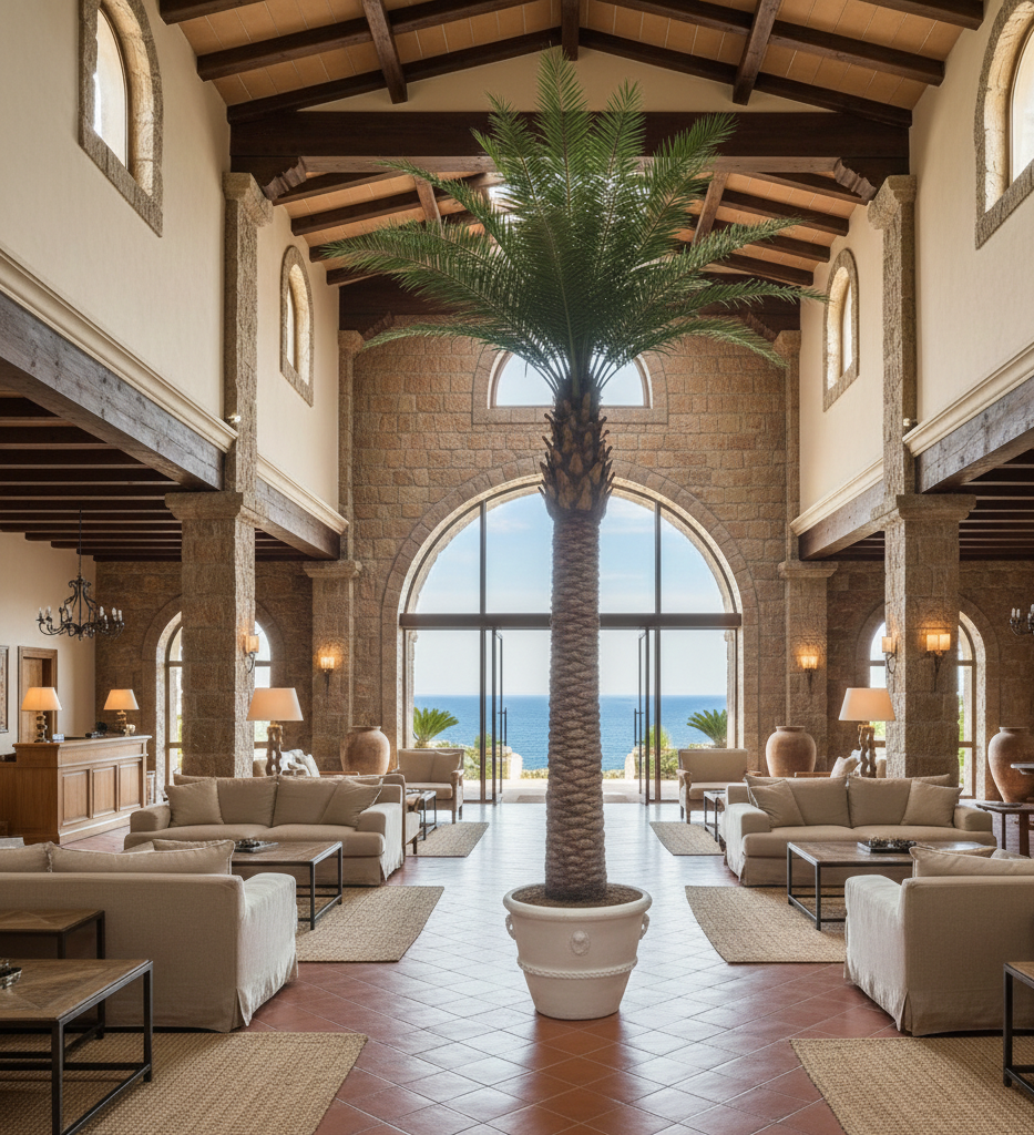 Versatilidad en Proyectos: Es la elección predilecta para decoración de oficinas diáfanas, recepciones de hoteles mediterráneos y locales de restauración que desean crear un oasis zen o un ambiente exótico. Su altura de 5 metros la convierte en el punto focal indiscutible de cualquier proyecto de interiorismo de lujo.
