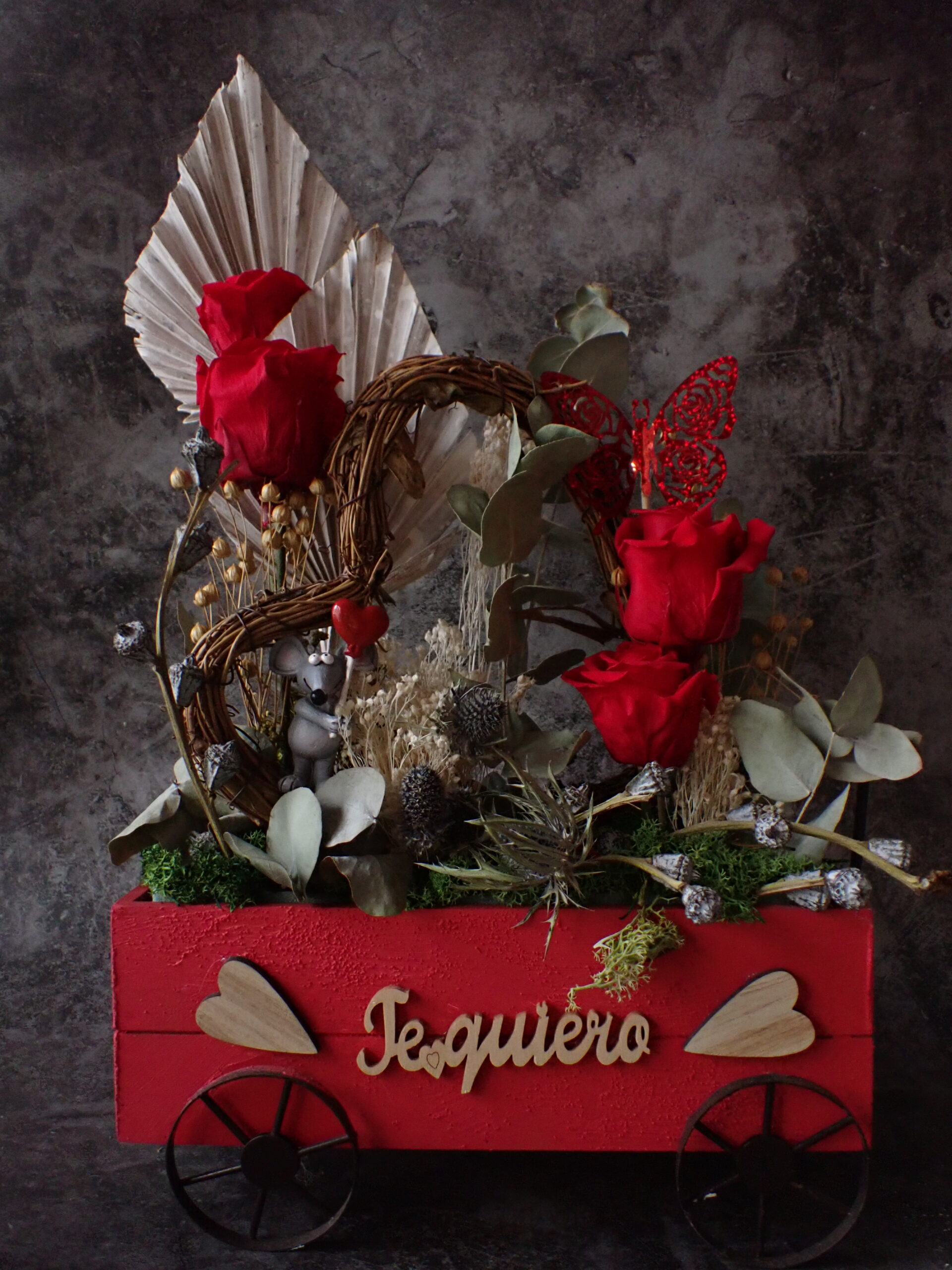 Este 14 de febrero, sube el nivel. Nuestro carrito love de flores naturales preservadas están diseñadas para durar años manteniendo ese aspecto de «recién cortadas». Trabajamos de forma exclusiva y personalizada, alejándonos de los productos de cadena. Es un detalle con identidad propia.
